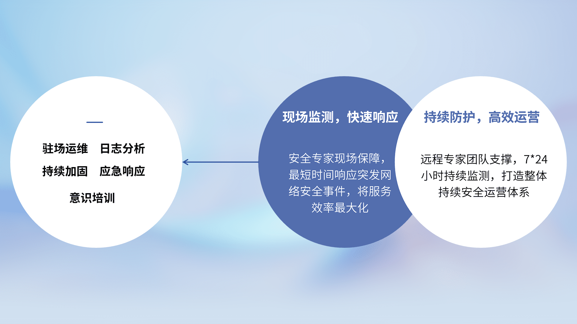 7X24小时持续监测安全事件,保持安全策略有效性,降低资产脆弱性风险,,精准拦截黑客攻击,,,,减少被黑客利用的机会,,第一时间遏制,,降低损失。。。。